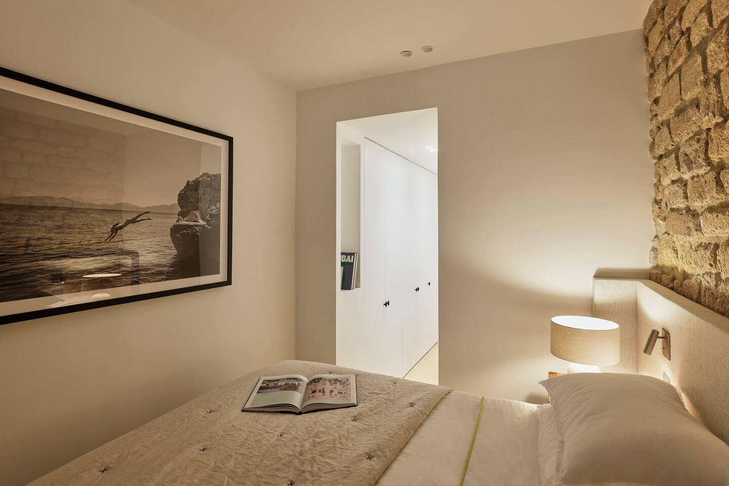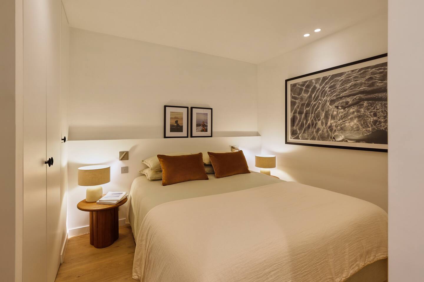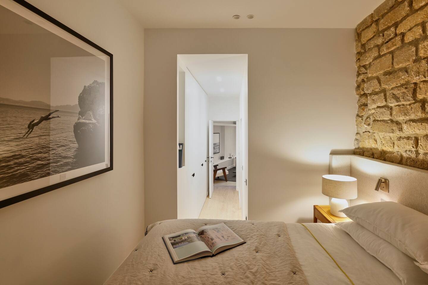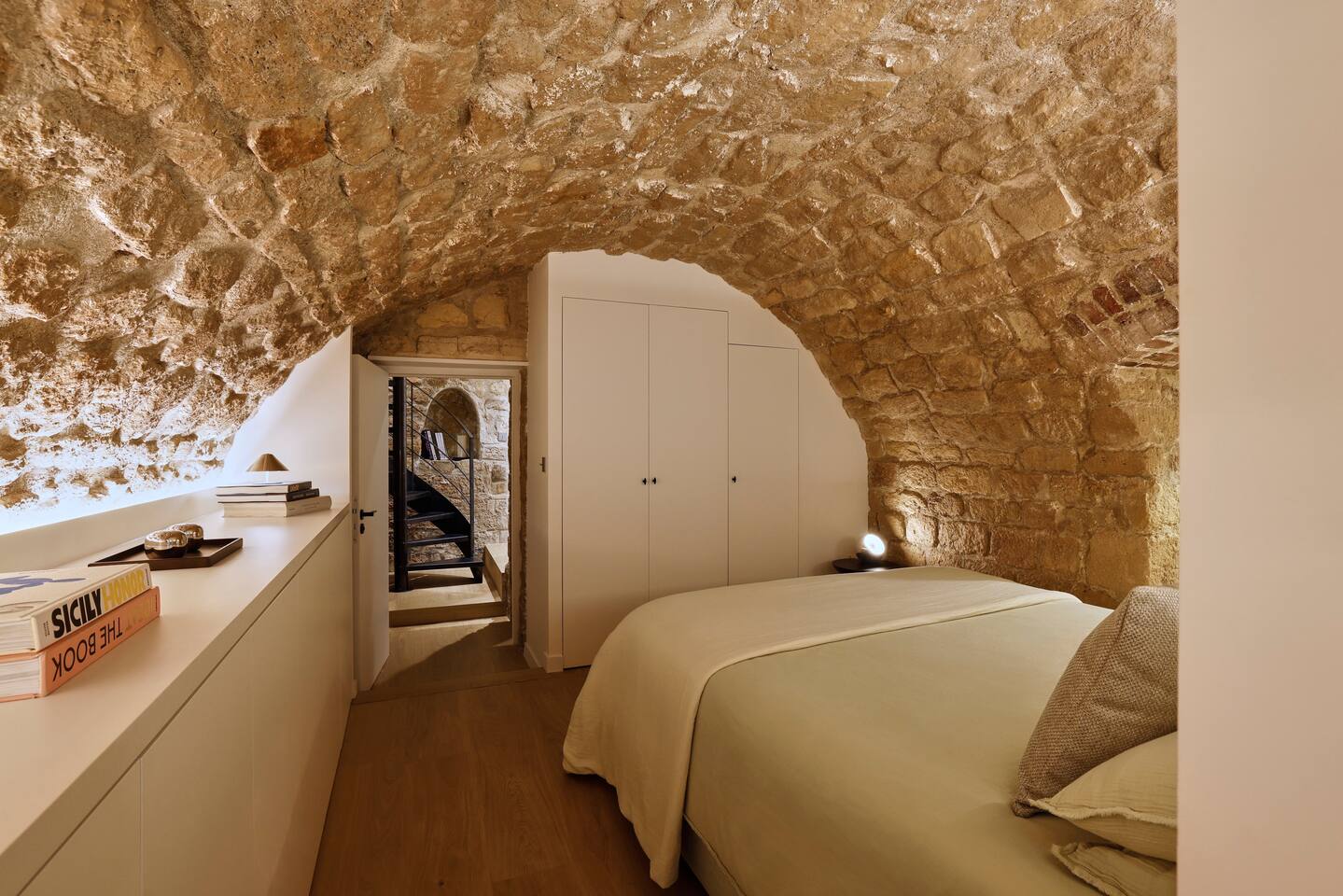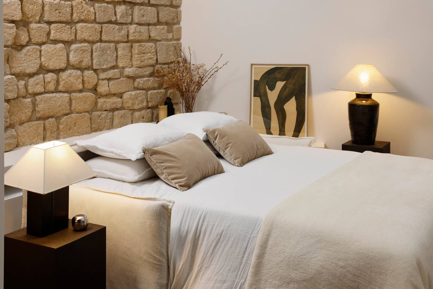 The 1500 sqft apartment is located on the ground floor of a typical Marais building. Designed and tastefully decorated by a renowned interior architect, the apartment features adjustable lighting and individual temperature control in each room, ensuring year-round comfort thanks to underfloor heating and air conditioning. With only one street-facing window and a window onto the courtyard, the apartment offers a peaceful, cocoon-like atmosphere. The generous ceiling height, glass roof above the living room, well-designed lighting and efficient ventilation ensure the space feels open, comfortable and never enclosed. The dining area includes a table that comfortably seats up to 10 guests. The fully equipped kitchen offers a dishwasher, oven and microwave, induction cooktop, kettle, Nespresso coffee machine with capsules, toaster, as well as a washing machine and a dryer. An ironing board, iron and drying rack are also provided. The living room sofa bed converts into a comfortable 180x200 cm sleeping area with a 12 cm thick mattress. Bed linen and duvets for this bed are stored in the wardrobe of one of the bedrooms. The first air-conditioned bedroom features a hotel-quality queen-size bed (160x200 cm), a spacious wardrobe and a dedicated workspace with a desk. The en-suite bathroom includes a shower, washbasin, toilet and hairdryer. The second air-conditioned bedroom also offers a hotel-quality queen-size bed (160x200 cm), a wardrobe, and a private bathroom with shower, washbasin and toilet. On the lower level, a small landing leads to a third separate toilet and the two remaining bedrooms. The third bedroom, a suite, features a hotel-quality queen-size bed (160x200 cm), a large wardrobe and a stunning bathroom with a spacious walk-in shower and vanity unit. The fourth bedroom offers a hotel-quality queen-size bed (160x200 cm), a large wardrobe and a private bathroom with shower and vanity unit. Bath amenities (shower gel and shampoo) as well as soft towels are provided in all bathrooms. Ultra-fast high-speed internet via fiber optic connection is available throughout the apartment, with two Wi-Fi repeaters.