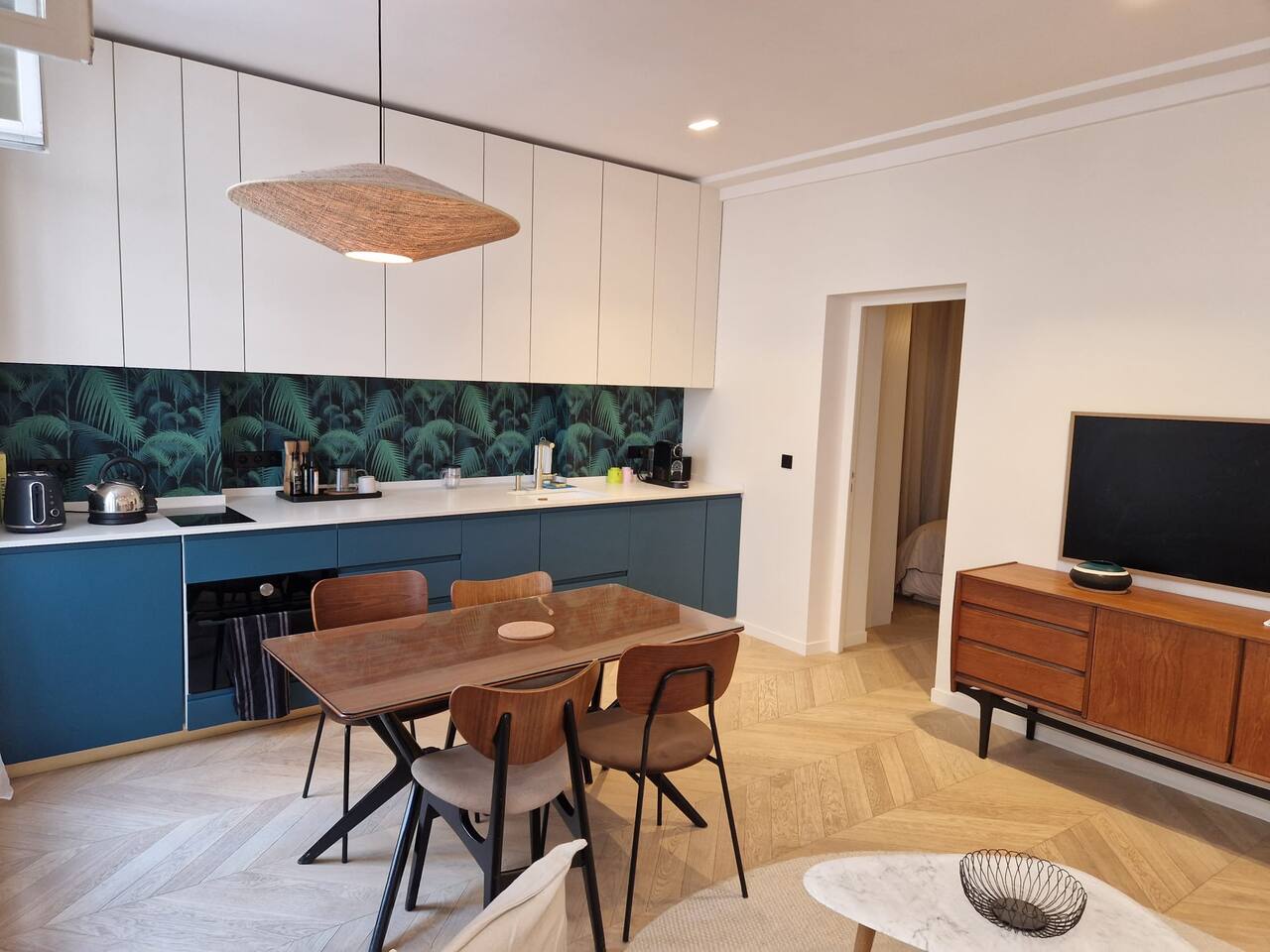 The appartement of 40 sqm (4 300 sqf) is located on the ground floor of a typical building from le Marais. You can self check-in at anytime, day or night (the code to the electronic door lock will be provided before your arrival). The apartment was designed and decorated with taste by an interior designer. You will notably be able to dim the light everywhere. The living room overlooks rue Pastourelle and the bedroom overlooks rue de Beauce. In the bedroom, you will find a queen size bed and a large wardrobe. The dinning area comprises a bar and a dining table for 4. The kitchen is well equipped with a dish washer, a combined oven and microwave, an induction hob, a kettle, a Nespresso coffee machine doing lattes (with complimentary Nespresso capsules for the duration of your stay), a toaster, crockery and utensils, as well as a washer/dryer (an iron table, iron and drying rack are also available). The bathroom has a shower, sink, hair dryer. Hand, body and hair products are also provided as well as soft towels. The separated toilet is accessible from the main corridor. An ultra high speed internet connection is also available everywhere in the apartment.