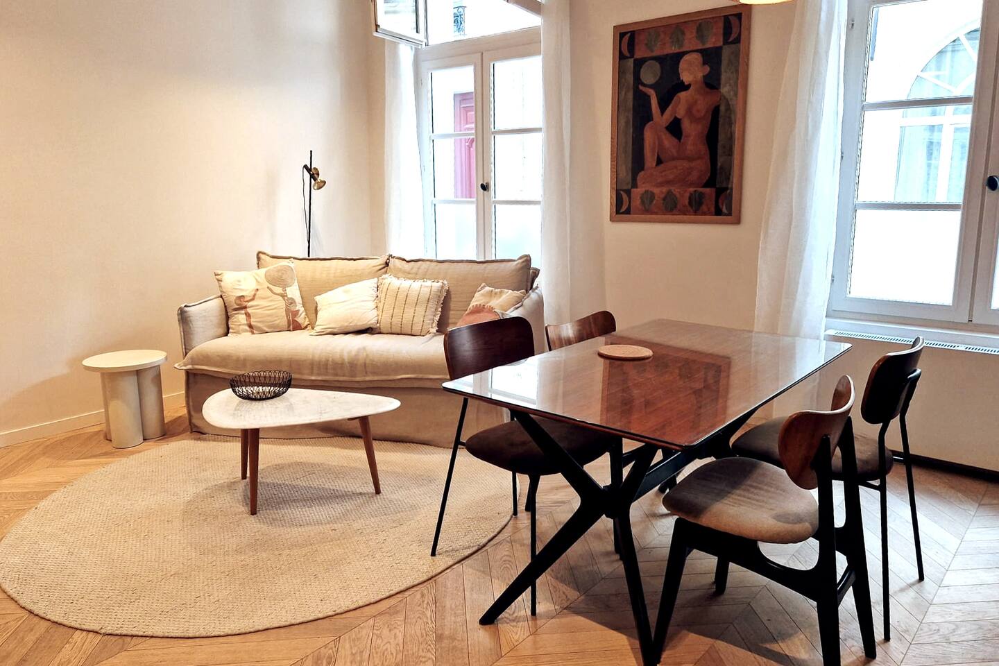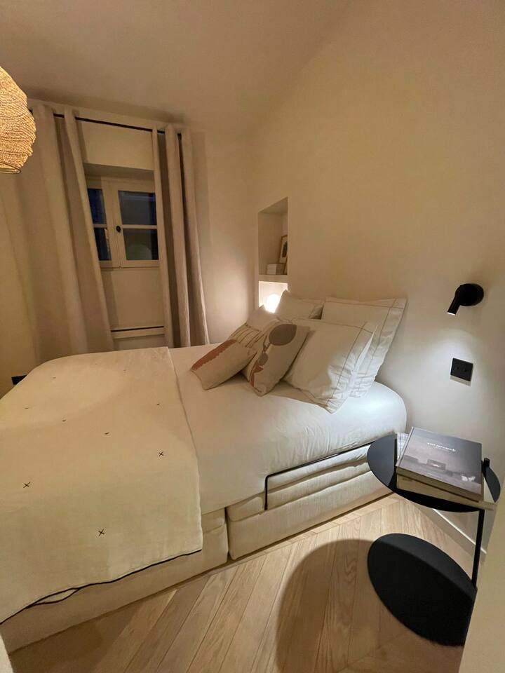 // Bed bugs-free apartment - Brand new mattresses // This apartment, decorated with taste and designed with care, is located in the heart of the haut marais. With a high ceiling, and beautiful artwork by Filippa Edghill, it really feels like home. The apartment is located near the trendy restaurants and cafés on rue de Bretagne, 50 meters from the Enfants Rouges covered market and it’s delicious food stands, and the fashion stores and museums of the marais district.