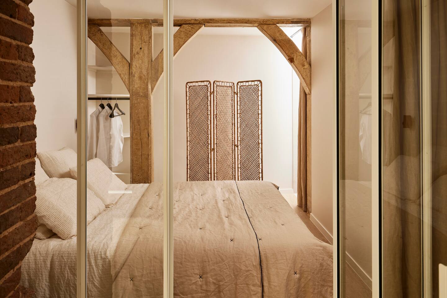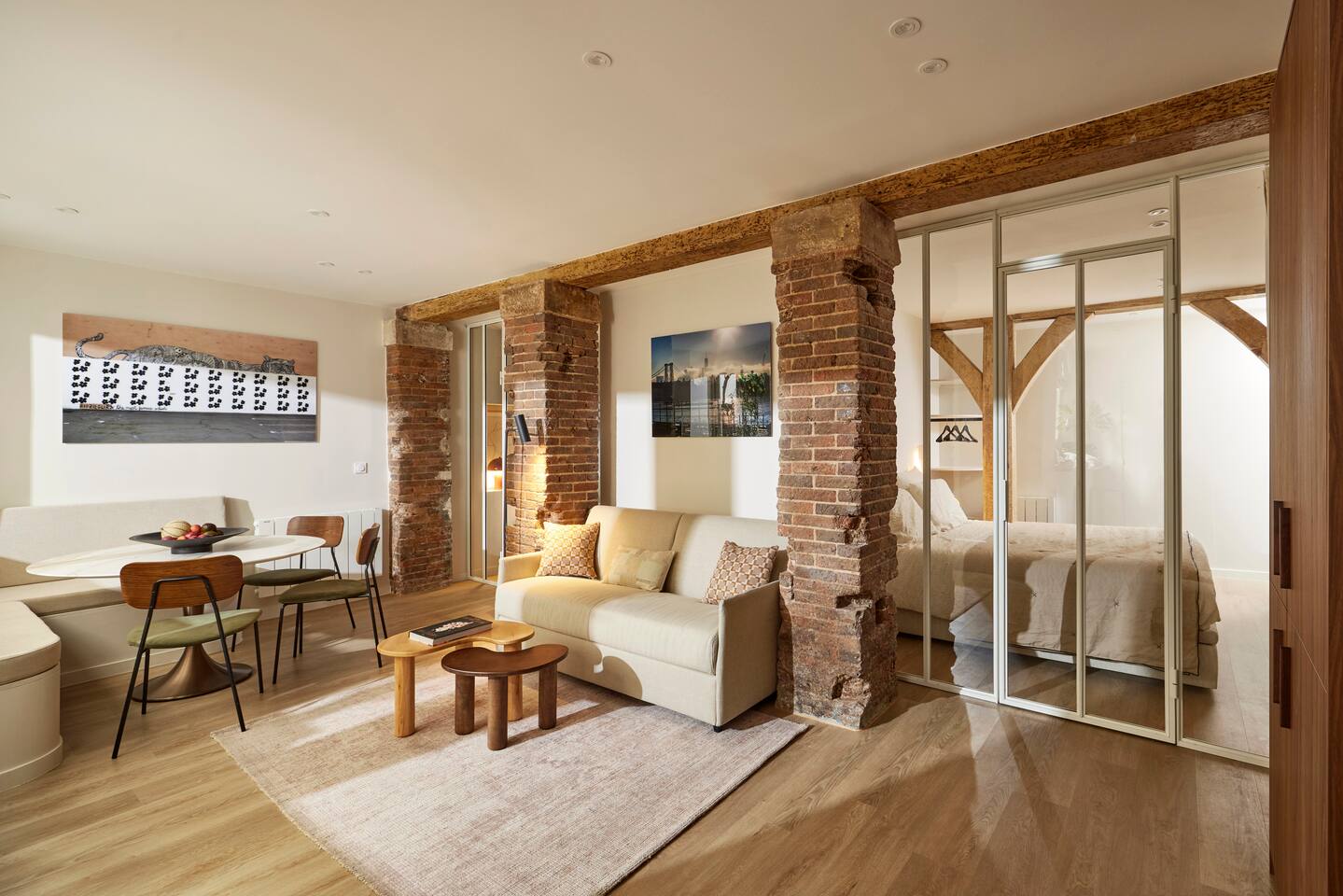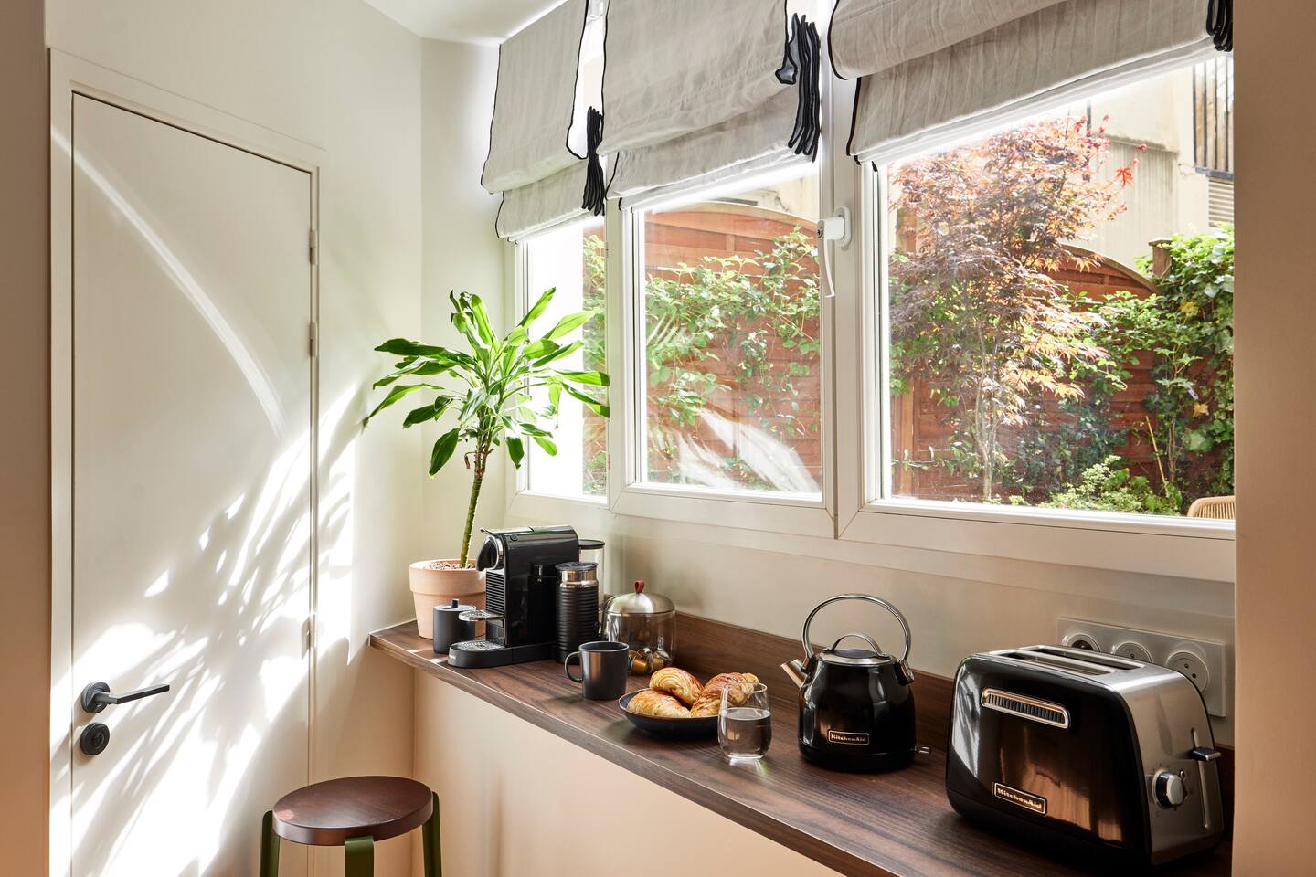 Nestled in a gorgeous building, our 55 sqm (600 sqf) apartment combines vintage charm with modern luxury on the ground floor. Situated in the vibrant Marais district, the apartment is very quiet and benefits from a sunny private terrace, to live like a local in Paris! ☆ 24/7 Easy Access: check in on your own terms with our electronic door lock. We'll provide the code before you arrive, so you can settle in at your convenience. ☆ Expertly designed space: crafted with love and attention, our apartment is both functional and aesthetic. ☆ Sleep on a luxury "hotel quality" mattress: two spacious bedrooms each feature a queen-size bed, ample wardrobe space, and individual bathrooms. For extra guests, the living room boasts a very comfortable double convertible sofa (140x200x12cm), with linens conveniently tucked away in the master bedroom wardrobe. ☆ Dine & unwind: whether you're hosting a dinner or enjoying a quick meal, the dining area features a stylish marble table for six. ☆ Gourmet kitchen: our well-appointed kitchen is equipped with top-of-the-line appliances including a dishwasher, combination oven/microwave, induction hob, kettle, and a special Nespresso machine that also crafts lattes (complimentary capsules). We haven't forgotten the toaster, crockery, utensils, or the essential washer/dryer. ☆ Splendid bathrooms: Each bedroom has its own en-suite bathroom, equipped with a shower and a vanity unit. You will find complimentary hand, body, and hair products, and fluffy towels for all guests. One toilet is located in one of the bathrooms, and the other is near the kitchen. ☆ Stay connected: whether you're here for work or leisure, our ultra-high-speed internet ensures you're always online, in every corner of the apartment.
